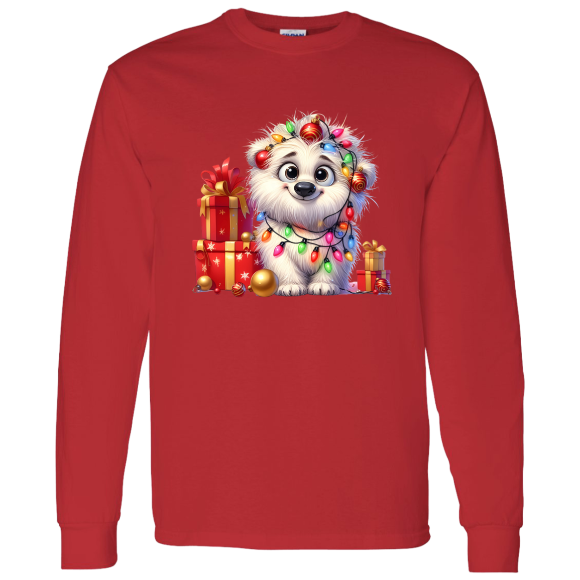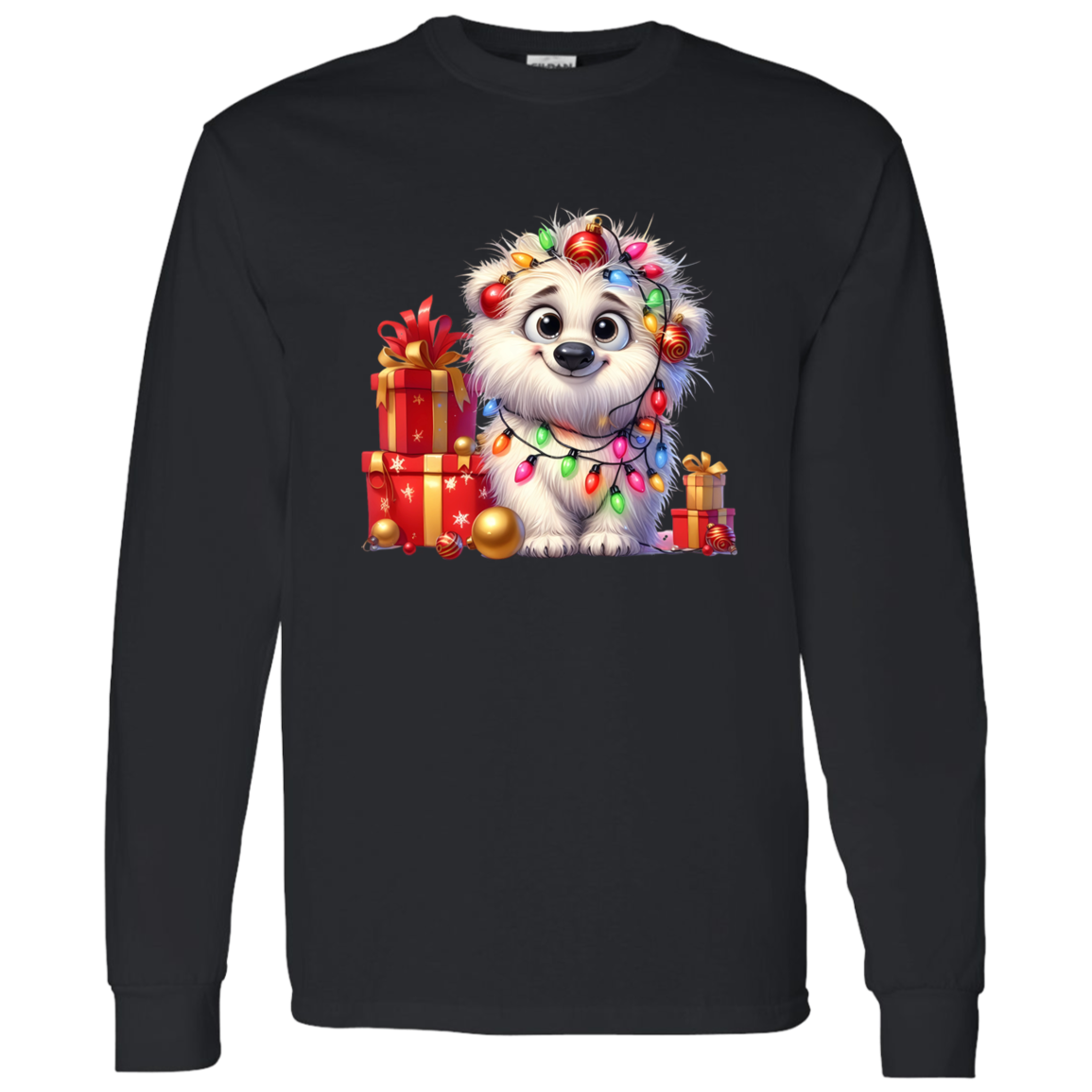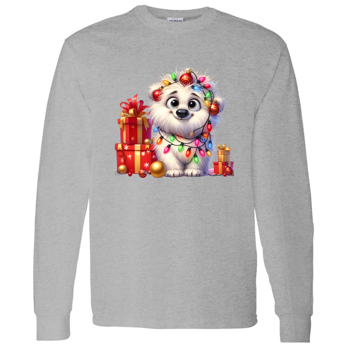 Make spirits bright with this heart-melting Paws & Presents Christmas Tee. Featuring an irresistibly cute puppy tangled in colorful holiday lights and surrounded by red-and-gold gift boxes, this long-sleeve shirt captures the cozy chaos and pure joy of the holiday season. Whether you're unwrapping presents, sipping cocoa, or snapping festive photos, this cheerful pup is the perfect companion. Crafted for comfort and printed in stunning detail, it's a must-have for every dog lover, holiday enthusiast, and anyone who believes Christmas is better with a little fluff and fun.