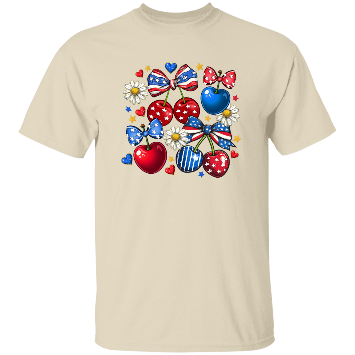 Dylan R. Great quality tee, comfy fit, and such a fun patriotic twist with the cherries.