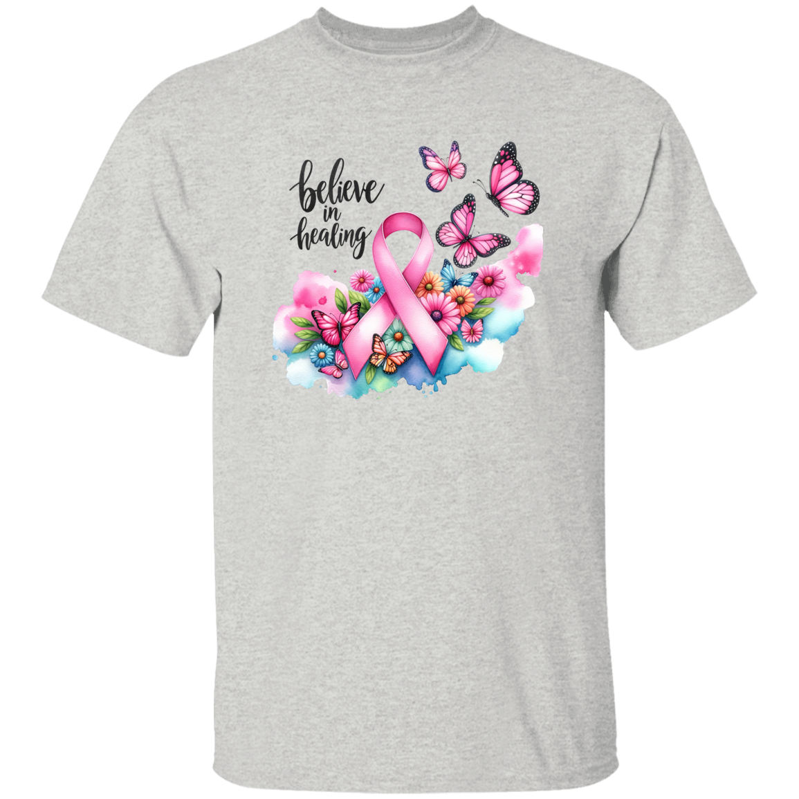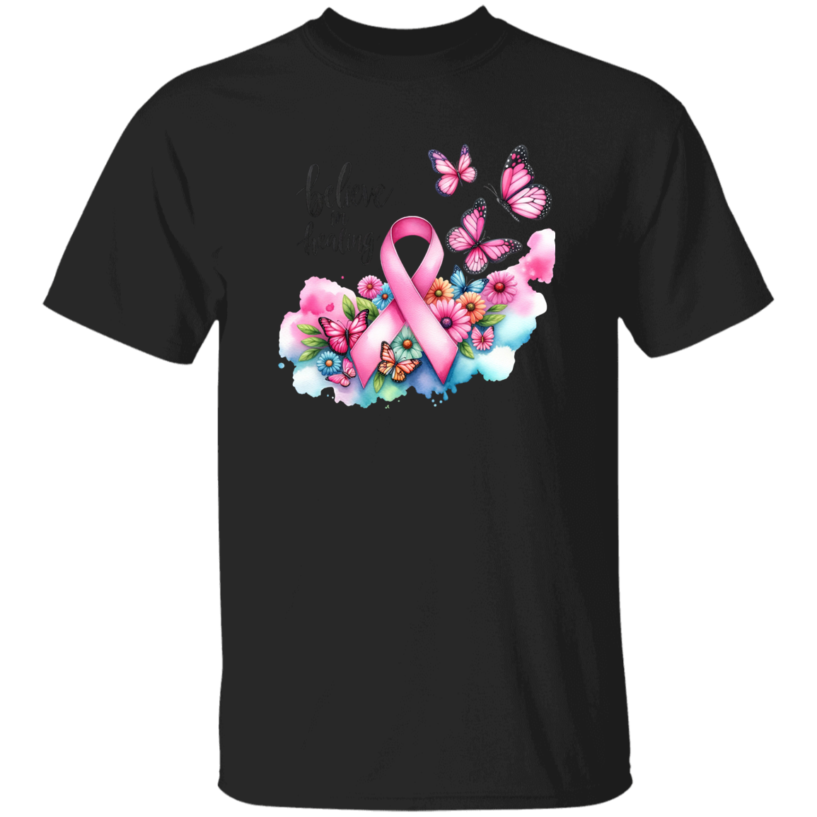This Breast Cancer Ribbon and Butterflies T-Shirt combines meaningful symbolism with comfortable wear. Featuring the universally recognized pink ribbon alongside elegant butterflies, it represents hope, transformation, and support for those affected by breast cancer. Crafted from soft, breathable fabric, this shirt offers both comfort and a powerful message, making it ideal for awareness events or everyday wear to show solidarity and raise awareness.