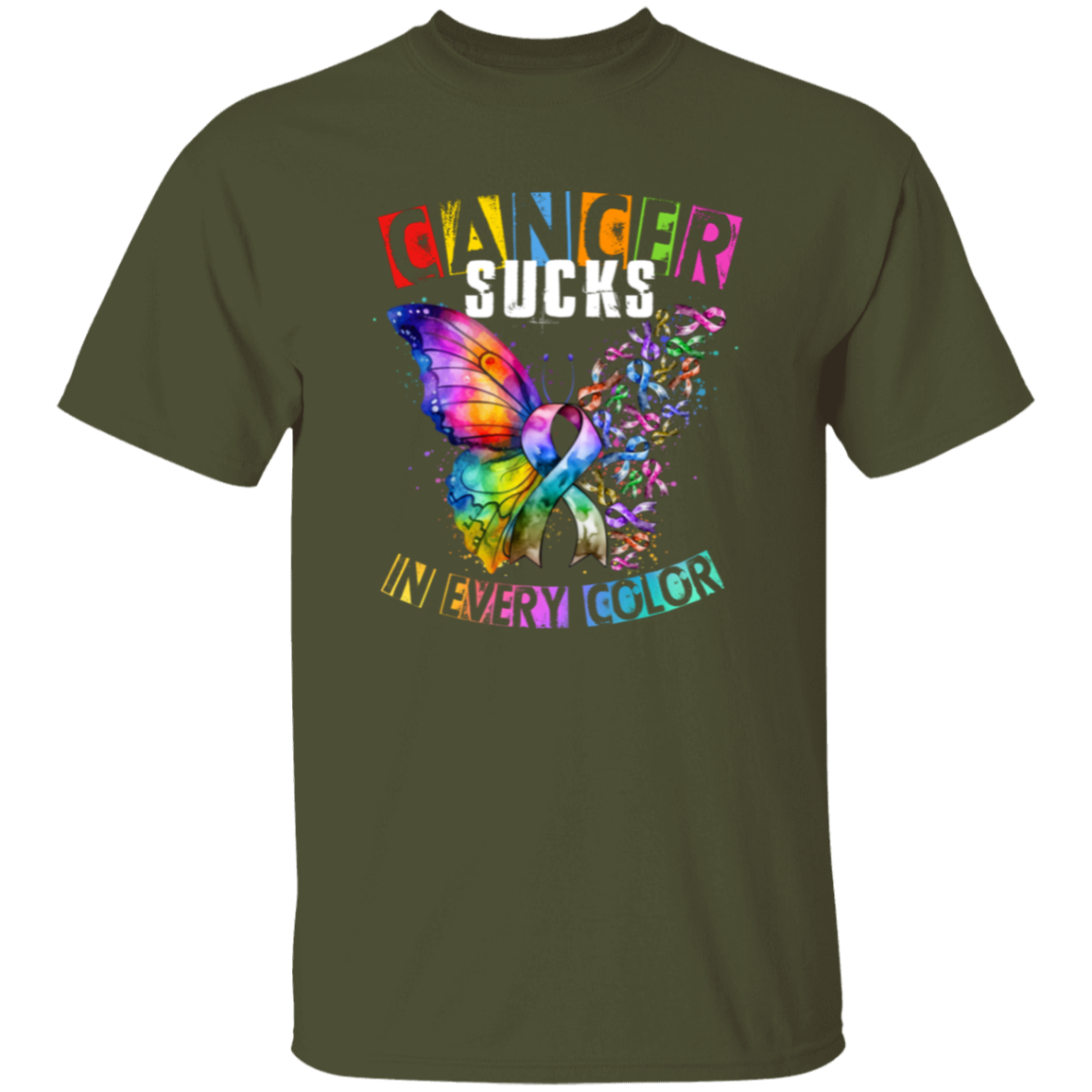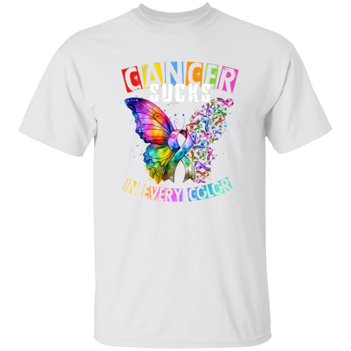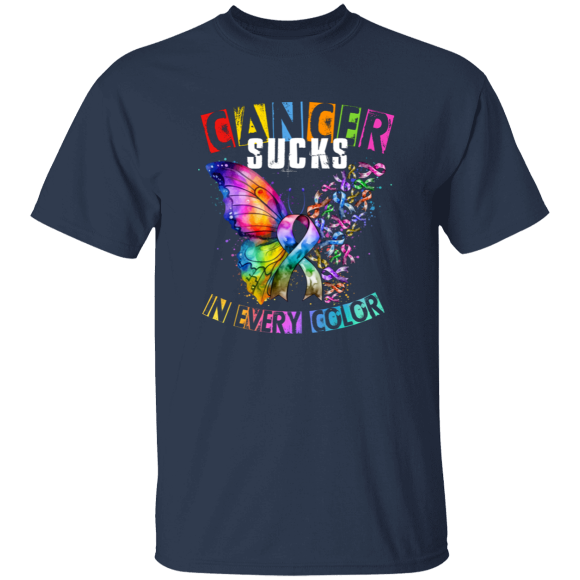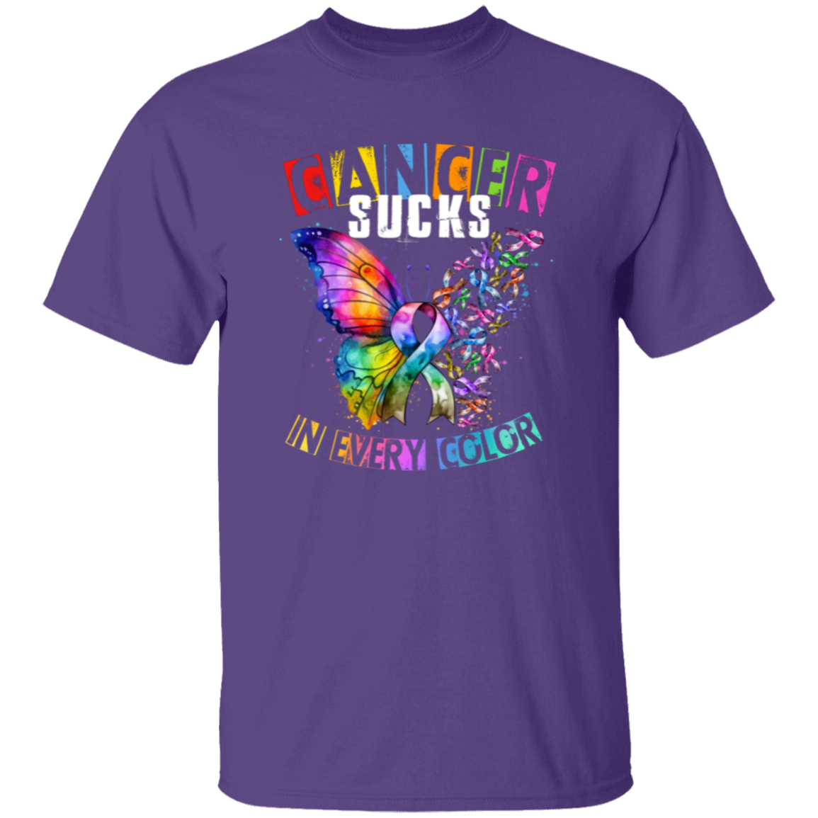 Show your support and raise awareness with the Colorful Cancer Sucks In All T-Shirt. Designed for comfort and impact, this vibrant tee combines bold colors with a powerful message, making it a meaningful choice for advocates and survivors alike. Crafted from soft, durable fabric, it offers lasting wear while helping to spread hope and solidarity in the fight against cancer.