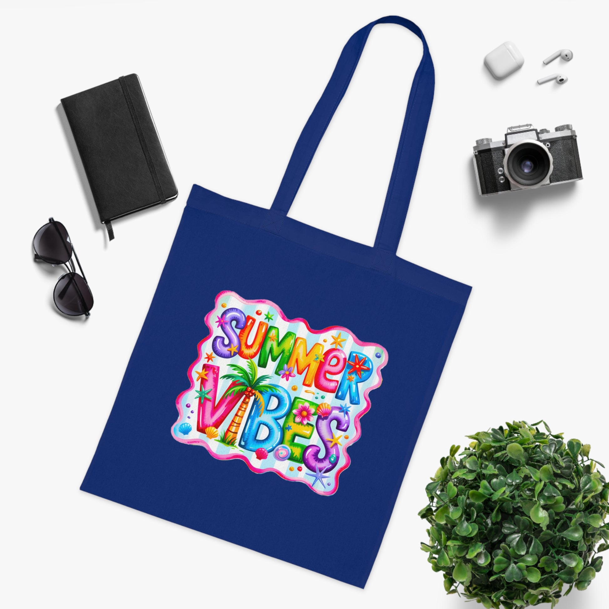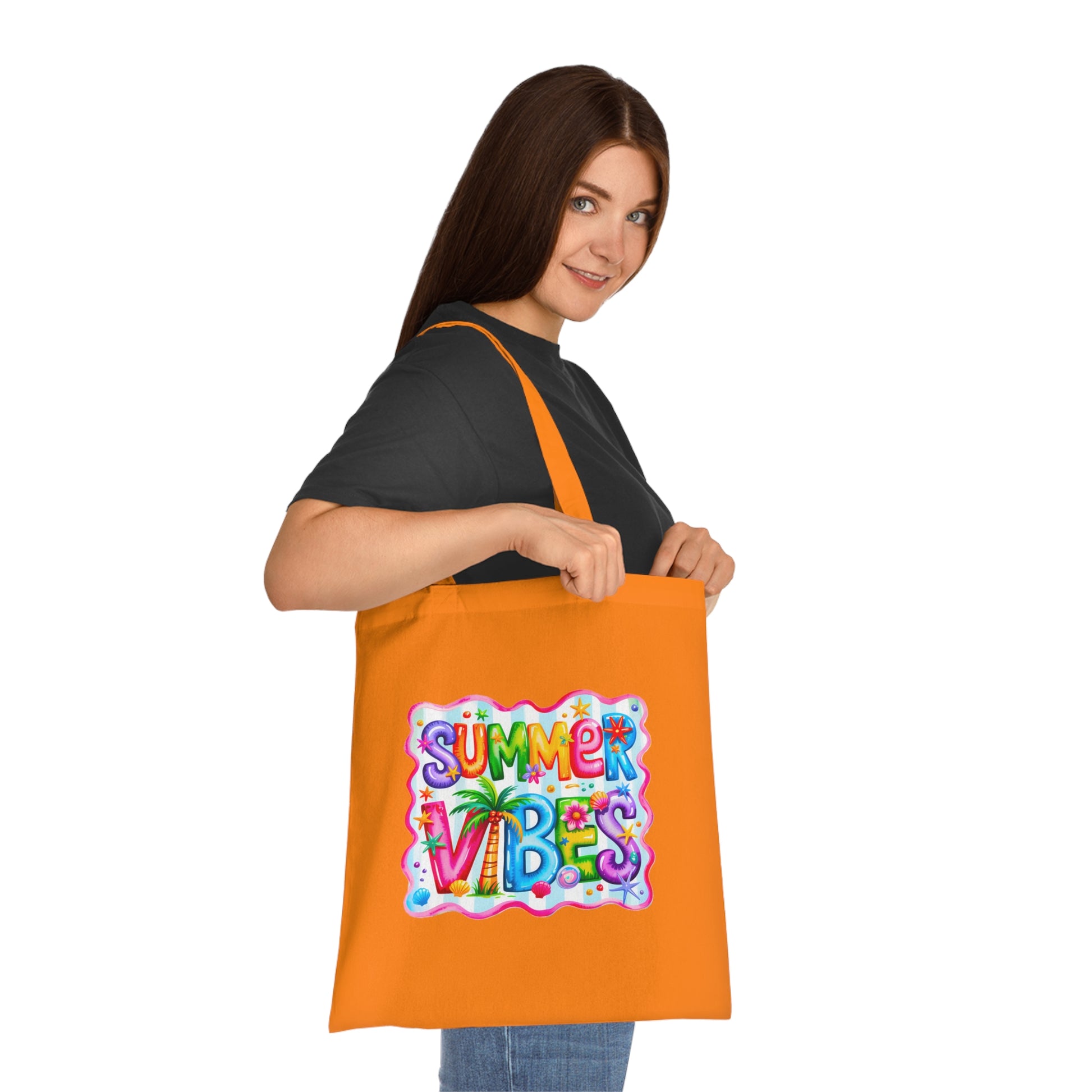 Colorful Summer Vibes Beach Reusable Tropical Bag Tote Cotton