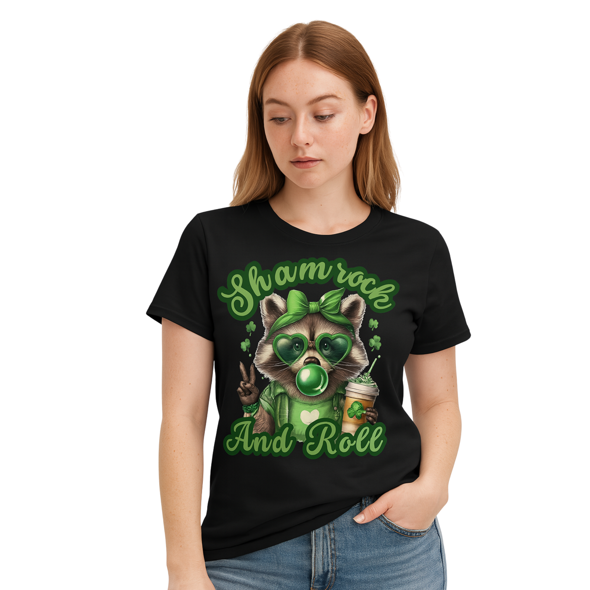 This is St. Patrick's Day Sham Rock And Roll Unisex T-Shirt. To Complete the look! Click here: I Want The Matching Shamrock and Roll Raccoon Coffee St. Patrick's Day Mug.