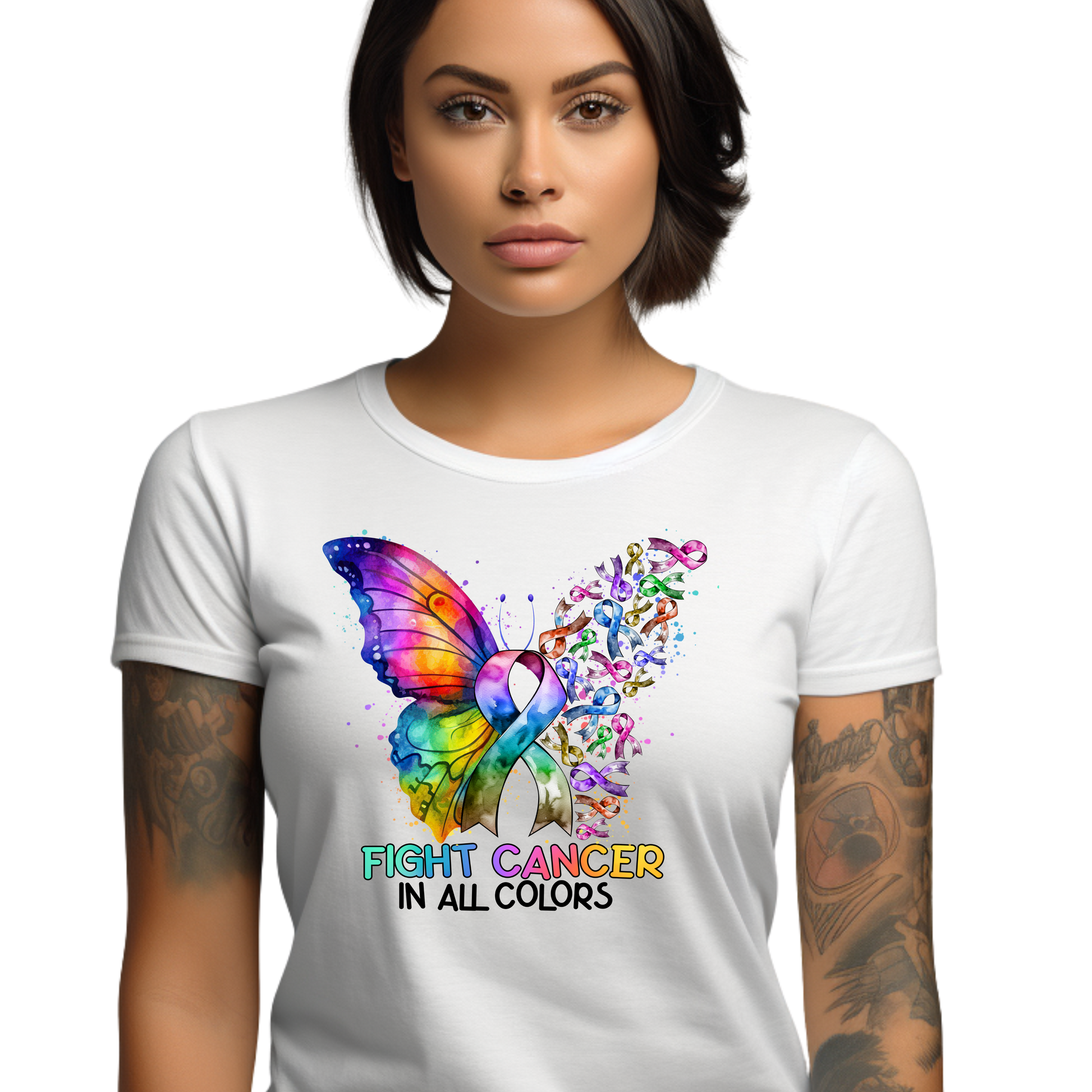 Celebrate strength and unity with the Fight Cancer In All Colors Colorful Butterfly Breast Cancer Awareness T-Shirt. This vibrant design features a multicolored butterfly symbolizing hope and the diverse fight against cancer. Crafted for comfort and awareness, it’s an ideal choice for supporters, survivors, and advocates dedicated to raising cancer awareness in all its forms.
