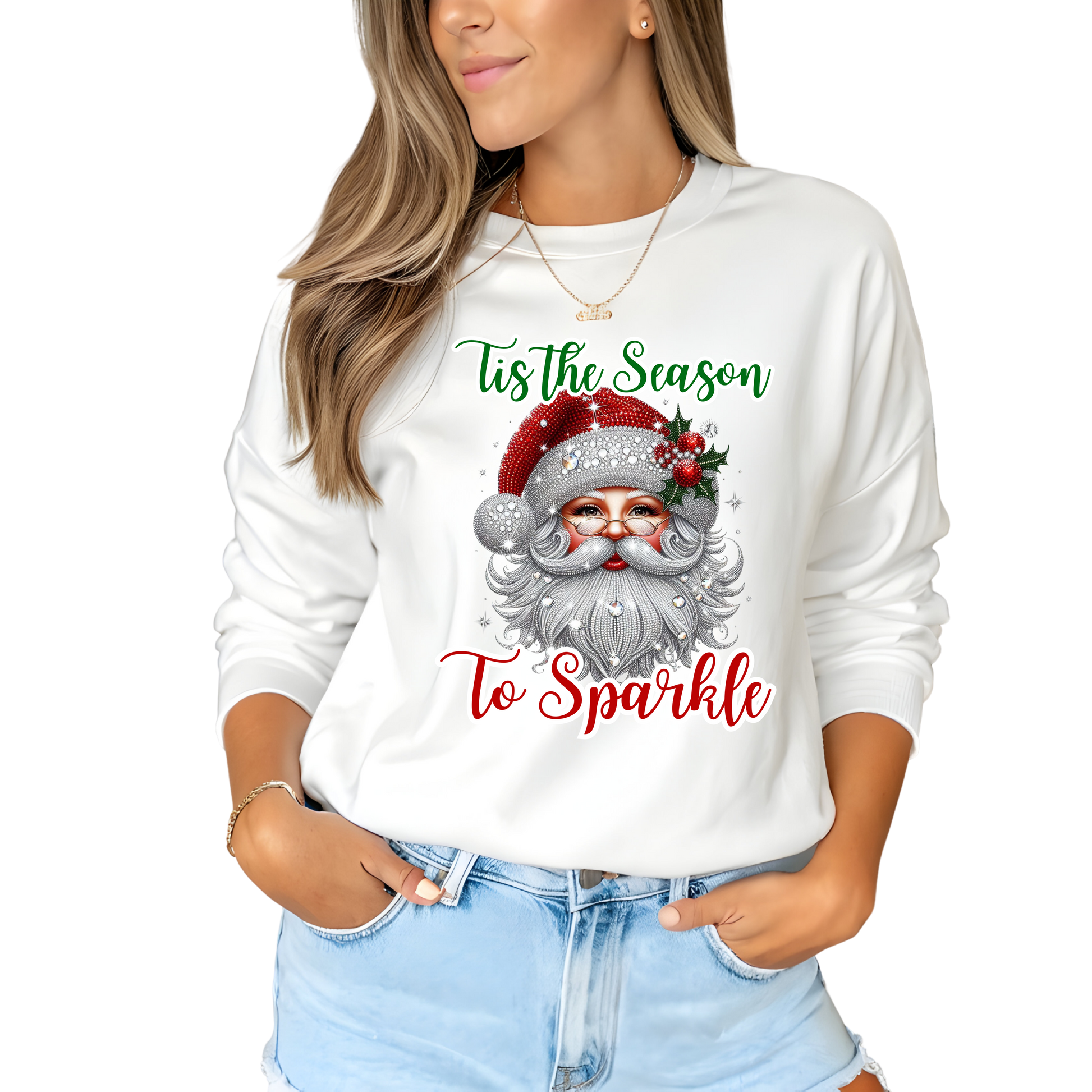 Shimmer, shine, and sleigh this holiday season in the Tis the Season to Sparkle Santa Sweatshirt! Featuring a fabulous Santa with a glistening beard, red glitter hat, and a twinkle in his eye, this sweatshirt brings the glam to your Christmas wardrobe.