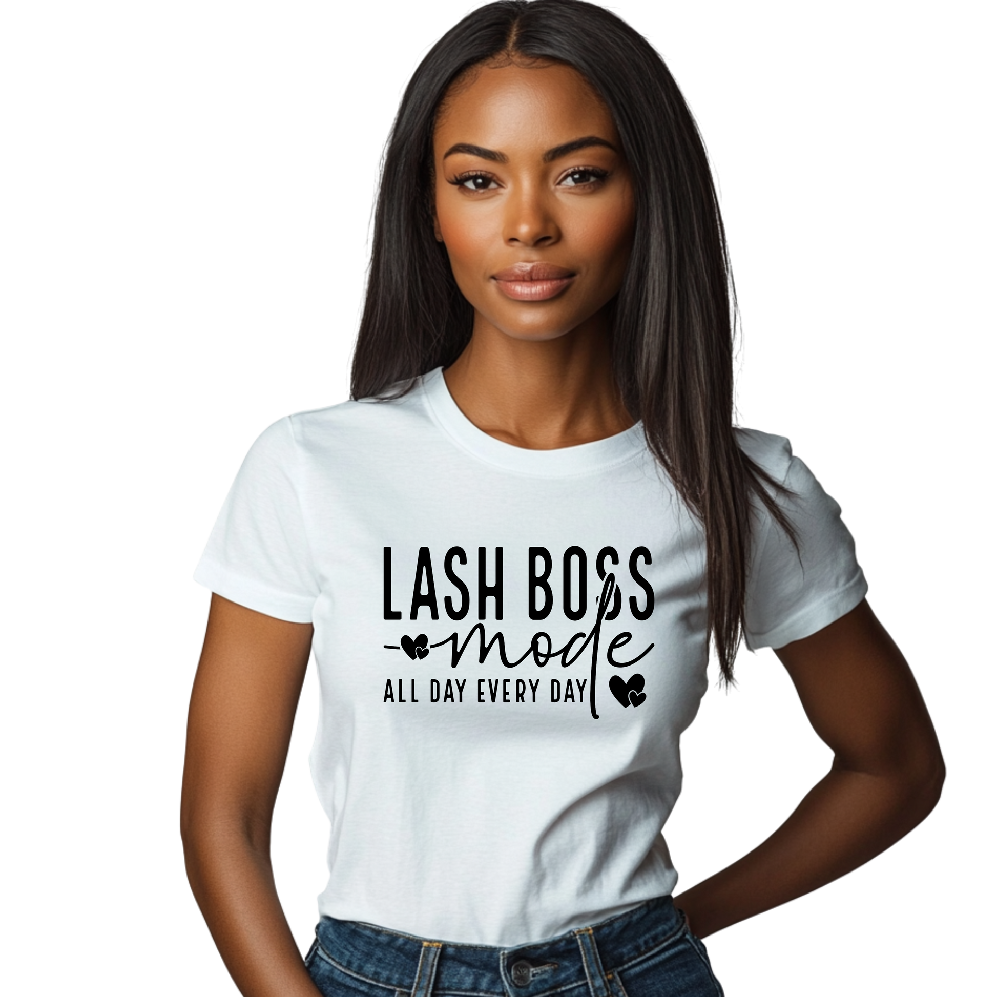 Show your professional pride with the Lash Boss All Day Makeup Artist T-Shirt. Designed for makeup artists who work tirelessly, this shirt combines comfort and style to keep you looking sharp throughout your busy day. Perfect for brand marketing or personal wear, it’s a versatile addition to any makeup artist’s wardrobe.