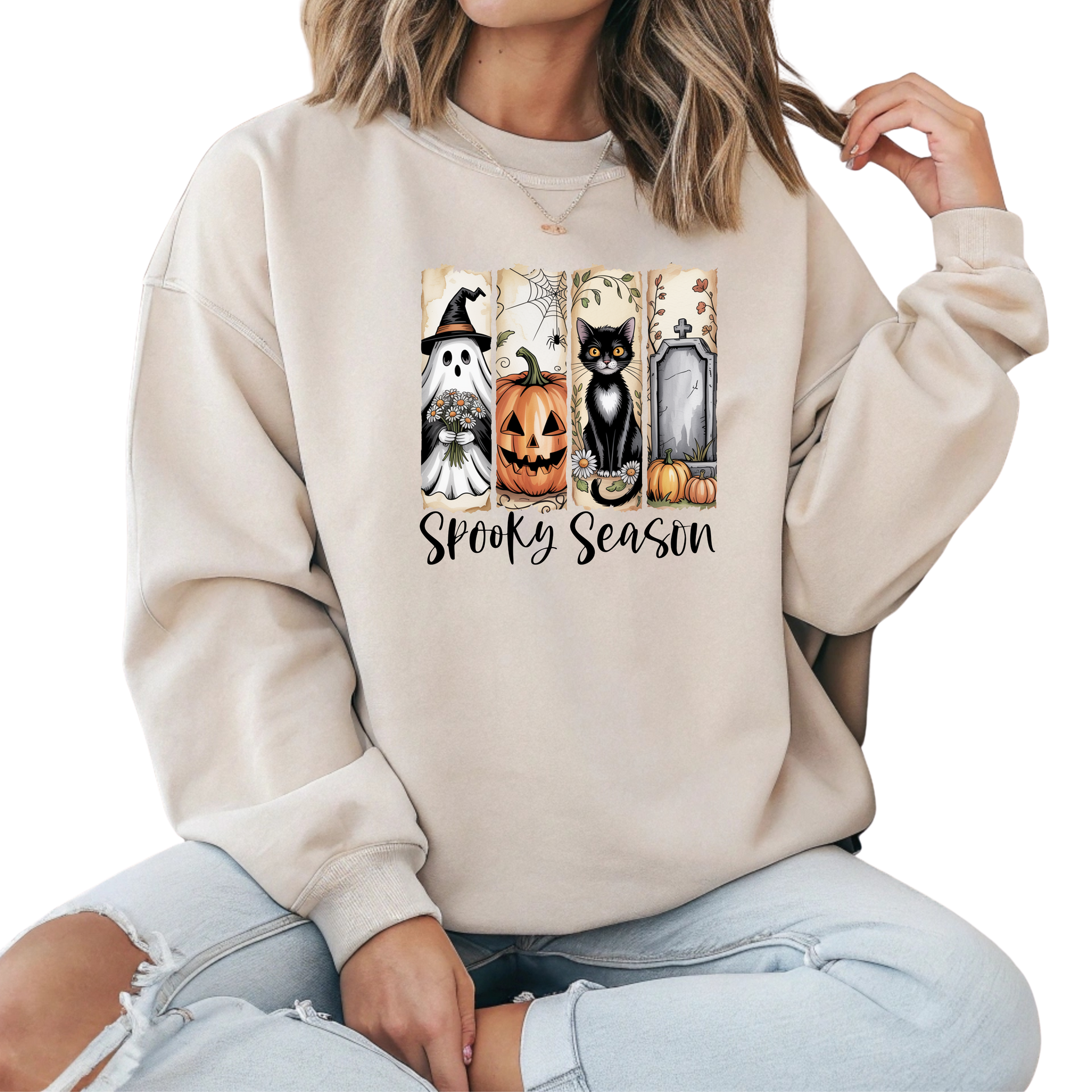 Spooky-Season Brushstroke-Halloween Crewneck Pullover Sweatshirt