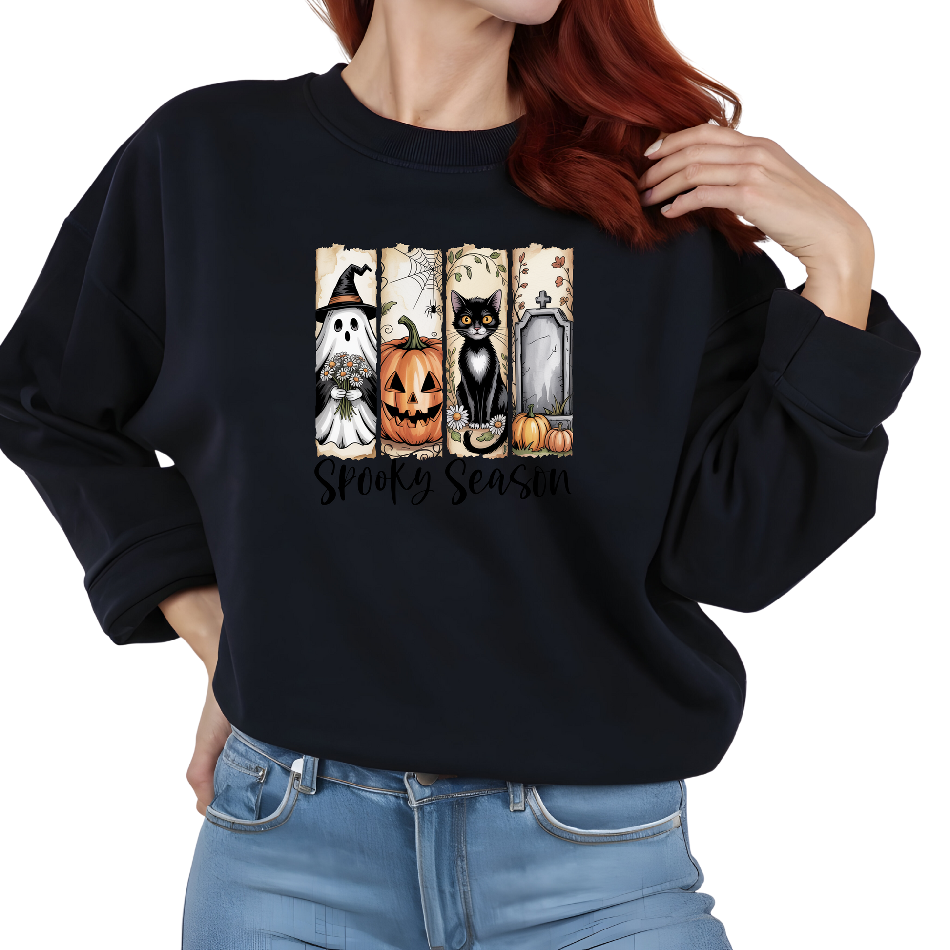 Celebrate the Halloween season with the Spooky-Season Brushstroke-Halloween Crewneck Pullover Sweatshirt. Designed for both comfort and fashion, it showcases a distinctive brushstroke pattern that embodies the spooky essence of Halloween. Made from soft materials, it provides cozy warmth for cool autumn evenings, perfect for holiday events or relaxed outings. This durable and low-maintenance crewneck blends festive appeal with functional wearability.