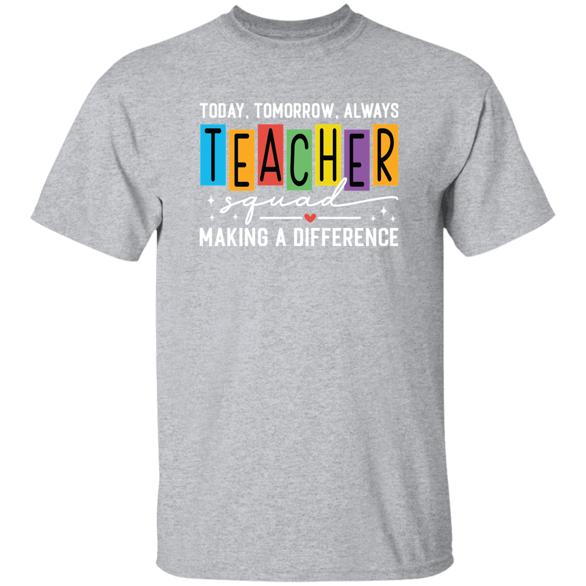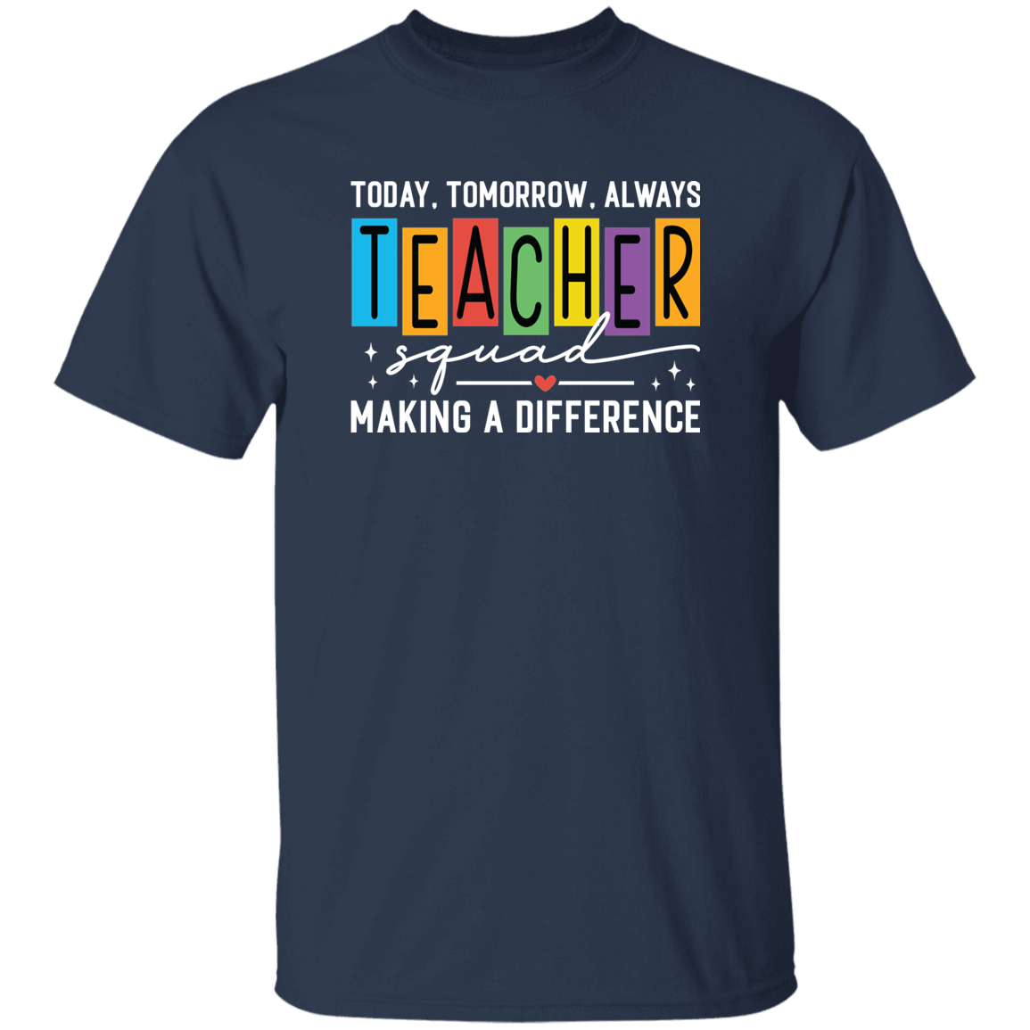 With bright block lettering and a heartwarming message that reads, Today. Tomorrow. Always. Teacher Squad Making a Difference," this shirt celebrates the passion and dedication that educators bring to every classroom, every day.