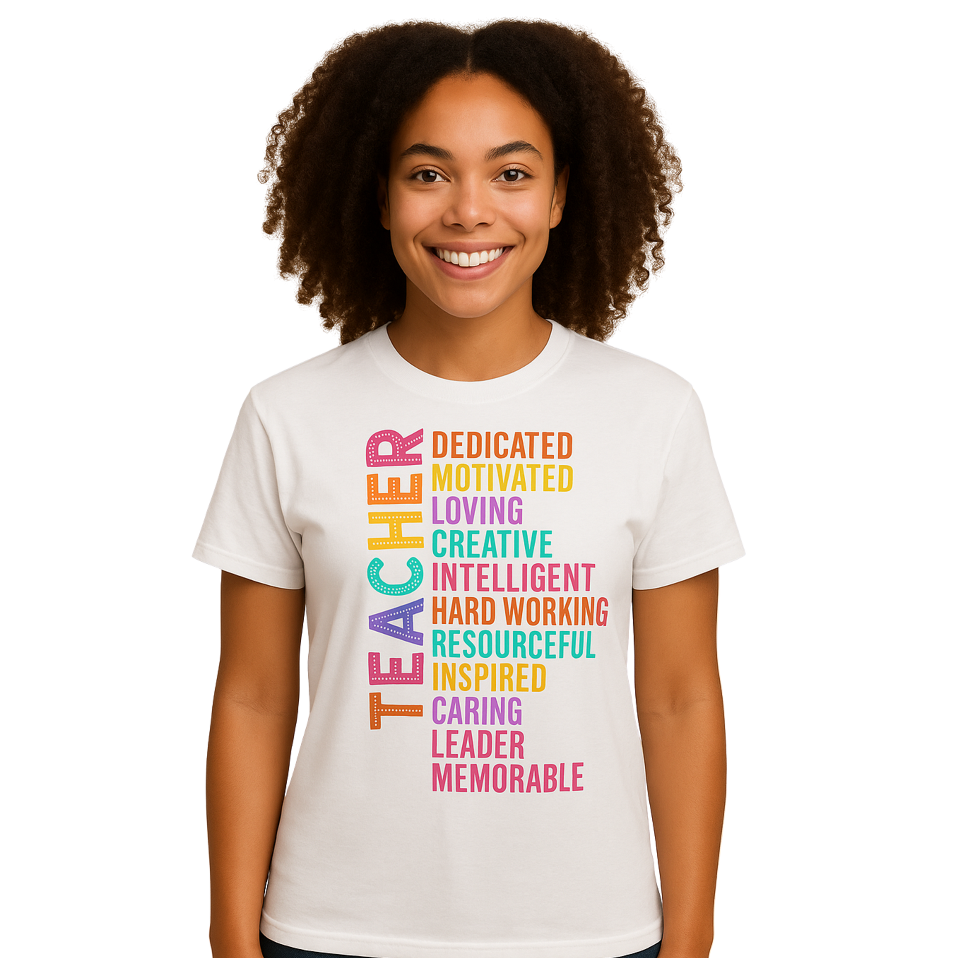 Love wearing something that represents my passion for teaching. It fits well, feels comfortable, and the design pops. Definitely recommend it for any educator!