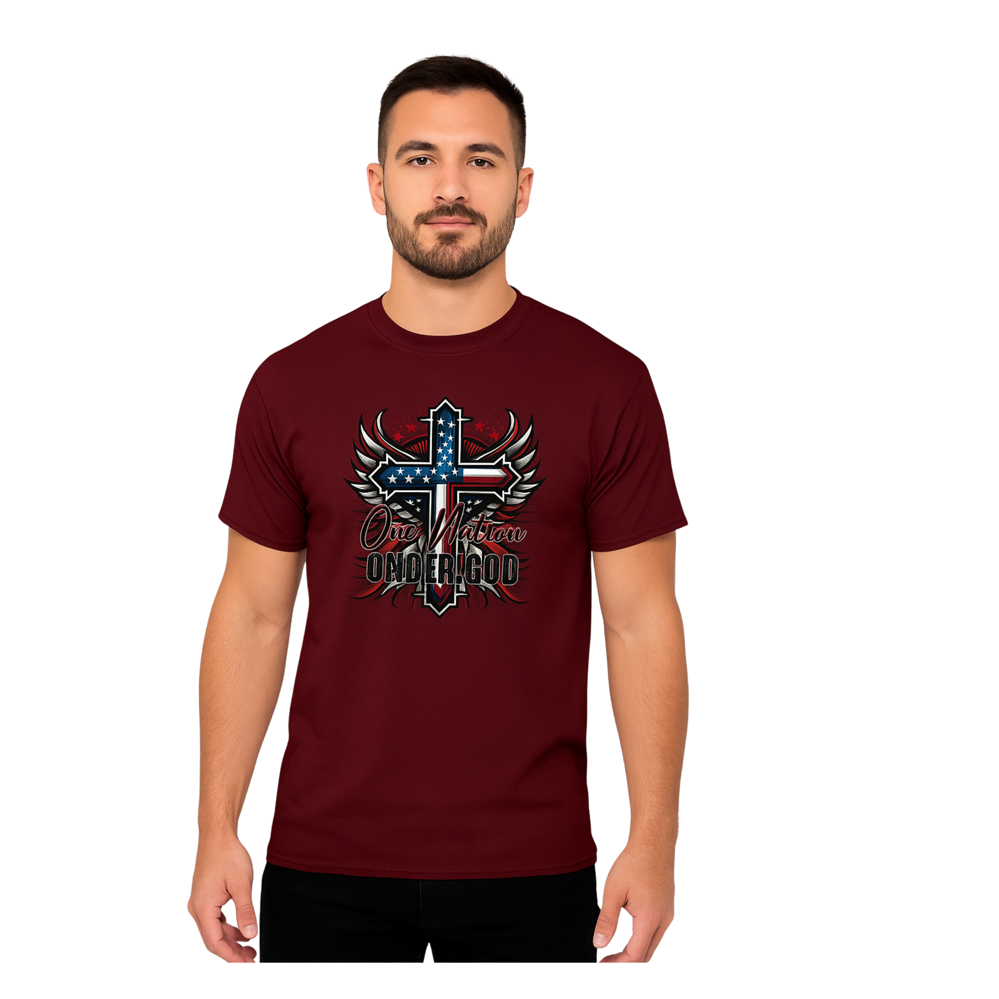 Celebrate unity and faith with the One Nation Under God Unisex T-Shirt. Crafted for comfort and durability, this shirt features a classic fit suitable for all genders. Its timeless design makes it perfect for expressing patriotism and shared values in everyday wear. Ideal for casual outings or community events, this tee combines meaningful messaging with quality fabric to ensure lasting wear and comfort.