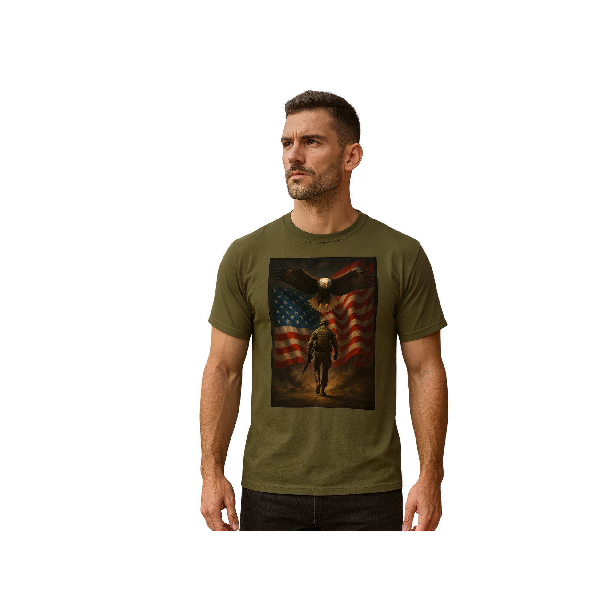 Show your pride with the Patriotic Military Eagle USA Unisex T-shirt, designed for comfort and durability. Featuring a bold eagle graphic symbolizing strength and patriotism, this shirt is perfect for everyday wear or special occasions honoring military service. Crafted to fit all genders comfortably, it combines style with a meaningful tribute to the USA.